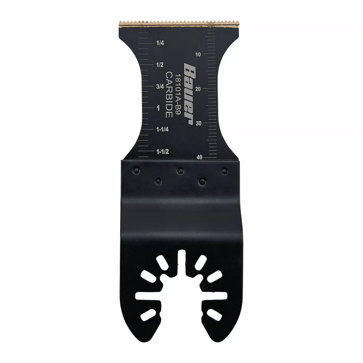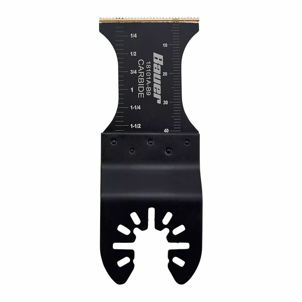 This BAUER™ 1-3/8 in. wide carbide tooth bi-metal reduced neck oscillating multi-tool plunge cutting blade with universal fit provides maximum durability when cutting nearly any material. Aggressive carbide teeth allow you to make quality cuts in metal, masonry, plastic, wood, wood with nails and drywall with ease. Features include a reduced shank for easier curve cutting and to clear wood chips faster making this a great plunge blade for making the most of your oscillating multi-purpose power tool.