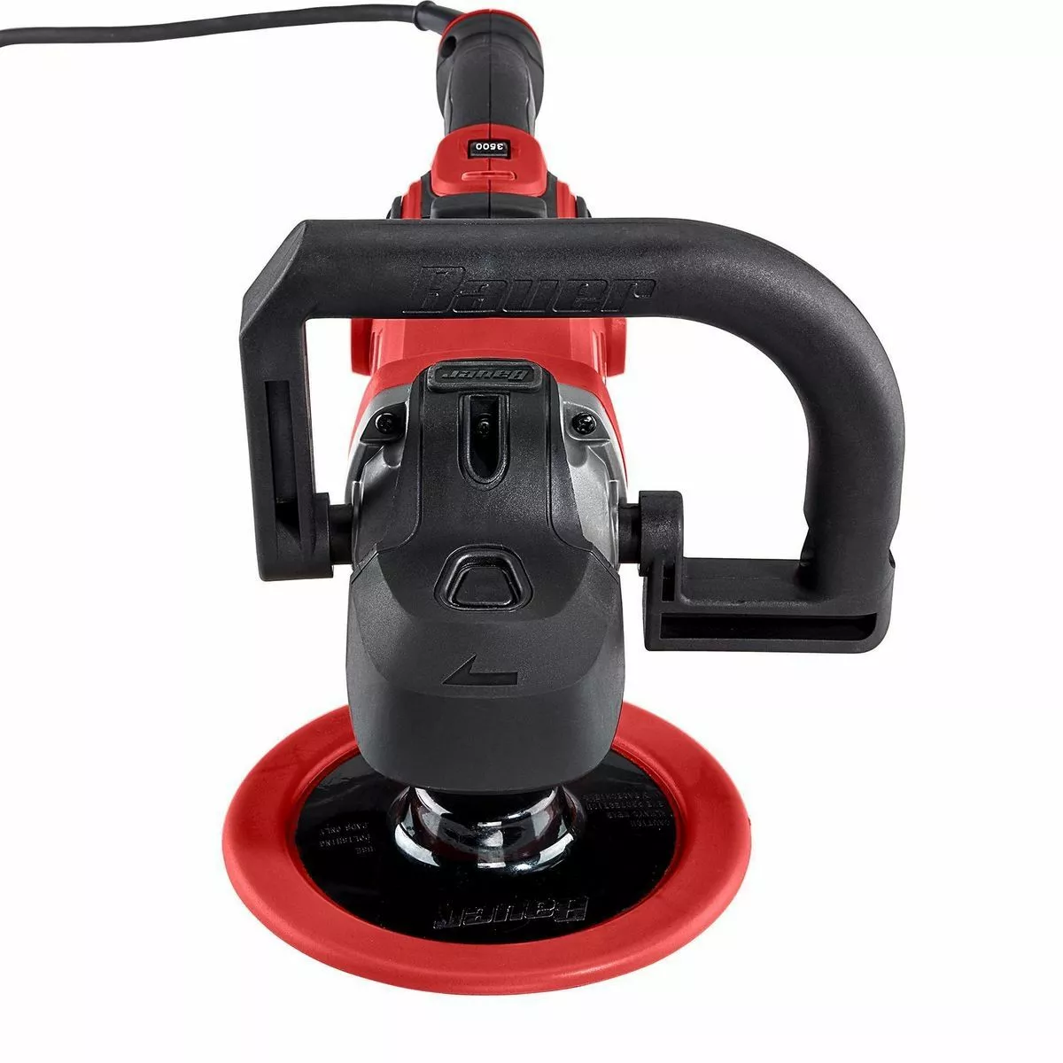 The BAUER™ 7 in. 12 Amp Variable Speed Rotary Polisher/Sander delivers 600 – 3500 RPM for smooth finishes. Eight variable speed settings adjust output precisely to match the type of work. The adjustable D-handle provides comfort and control in any position.