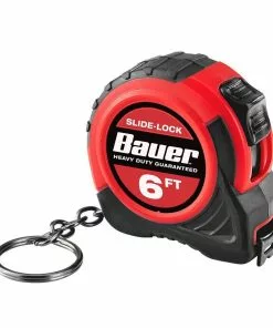 The durable steel blade on this BAUER™ Self-locking Tape Measure instantly locks in place when you extend it – no unexpected snap-back. The heavy duty ABS case has a no-slip rubberized grip for a secure hold. The blade is marked in 1/16ths of an inch and the markings are nylon-bonded for long life.