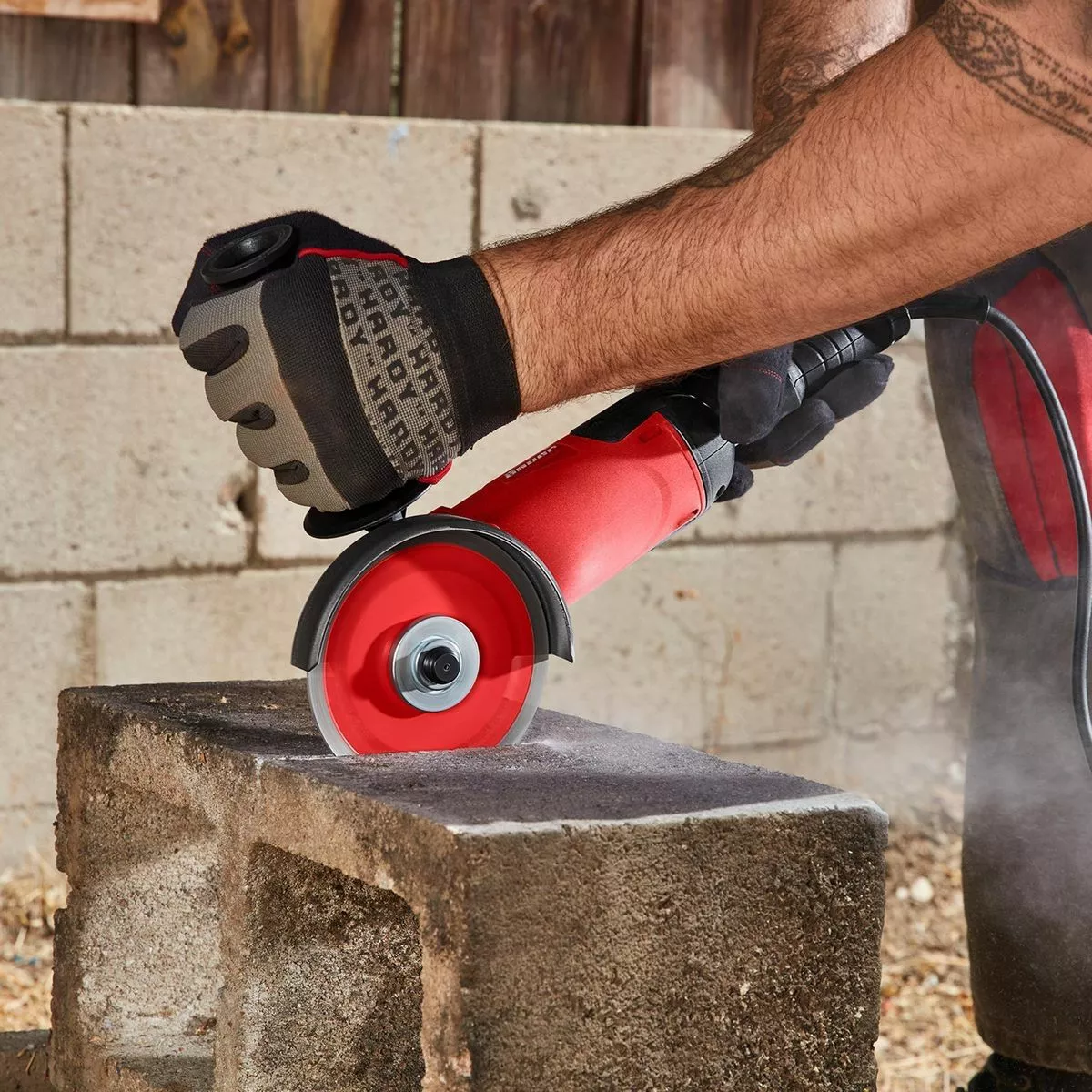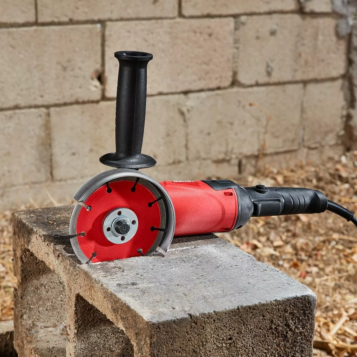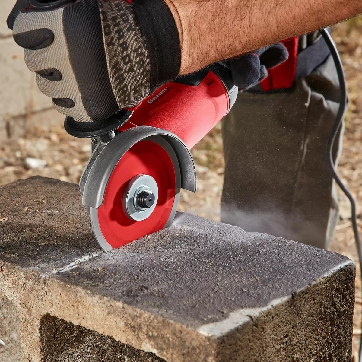 The BAUER™ 4-1/2 in. Segmented Rim Diamond Saw Blade is ideal for aggressive and fast cutting of brick, block and concrete. High grade diamonds and a premium bond matrix deliver long lasting performance when cutting wet or dry. The segmented slots clear debris from the cut, providing cleaner, cooler cuts. This diamond blade is designed for use with corded and cordless angle grinders.