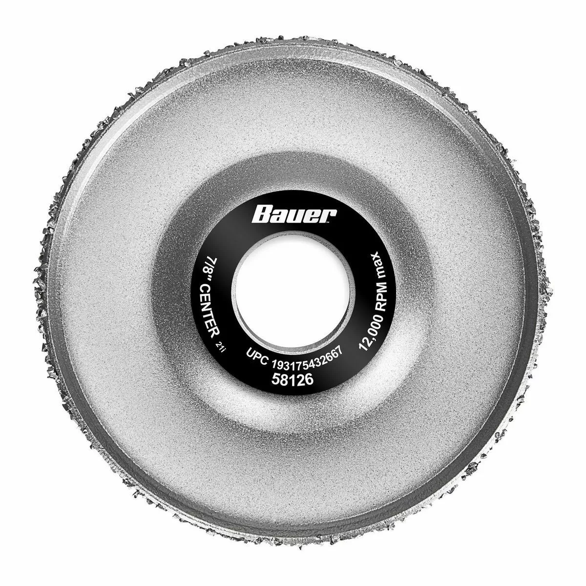 The BAUER™ 4 in. Coarse Carbide Grit Carving Disc has two sides bonded with premium carbide grit for aggressive material removal in hard and soft woods. The flat side is ideal for fast grinding of rough surfaces to be smooth-sanded later. The convex side is ideal for shaping, carving, and contour work. Perfect for shaping chair seats, large bowls, sculpting wood, and smoothing rough weathered lumber in preparation for sanding.