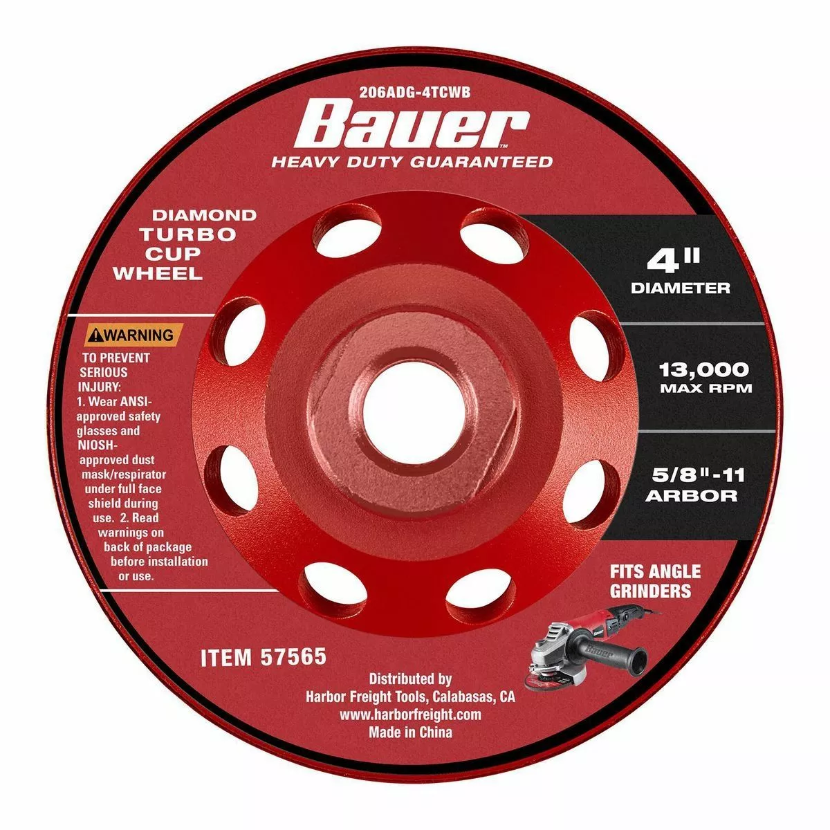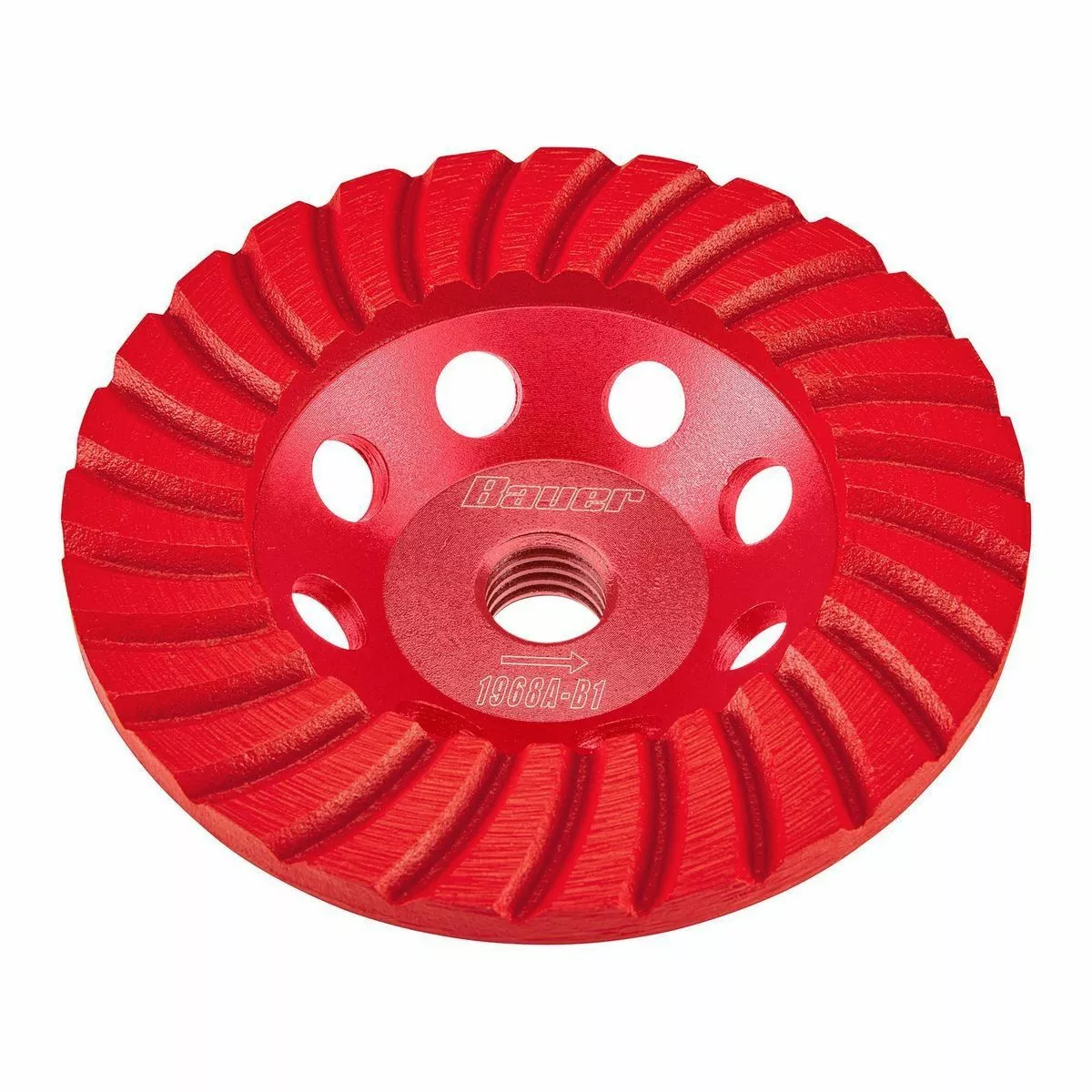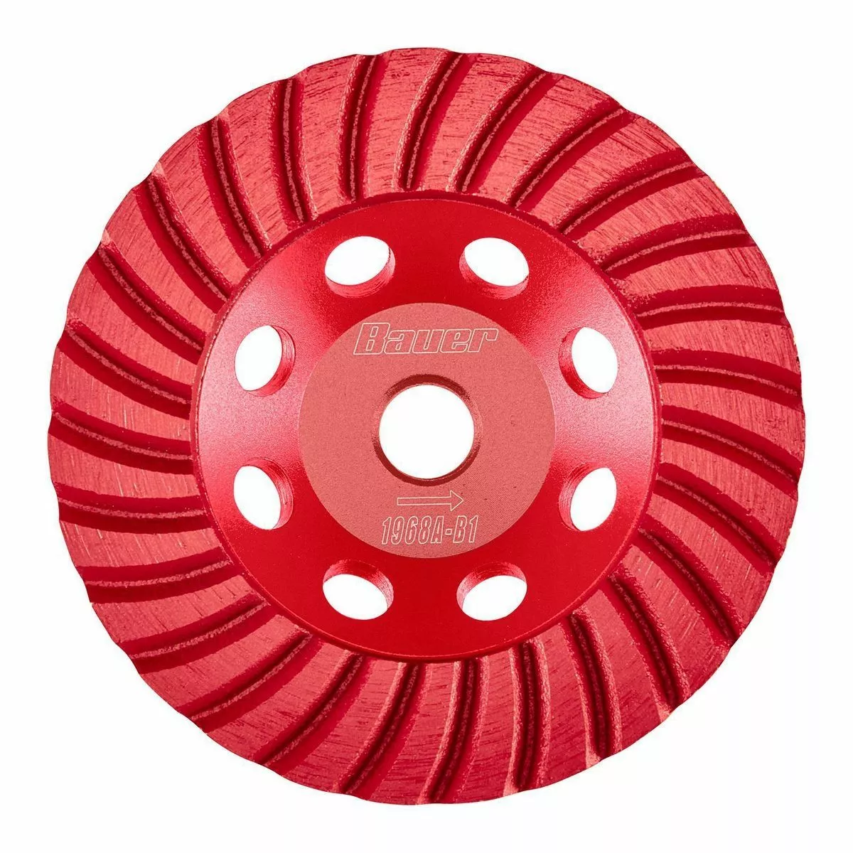 The BAUER™ Diamond Turbo Cup Wheel is designed for use with 4 in. angle grinders to power through project after project. This wheel is rated for a max speed of up to 13,000 RPM to handle demanding grinding and leveling jobs. Can be used with a dust shroud for cleaner work environment.