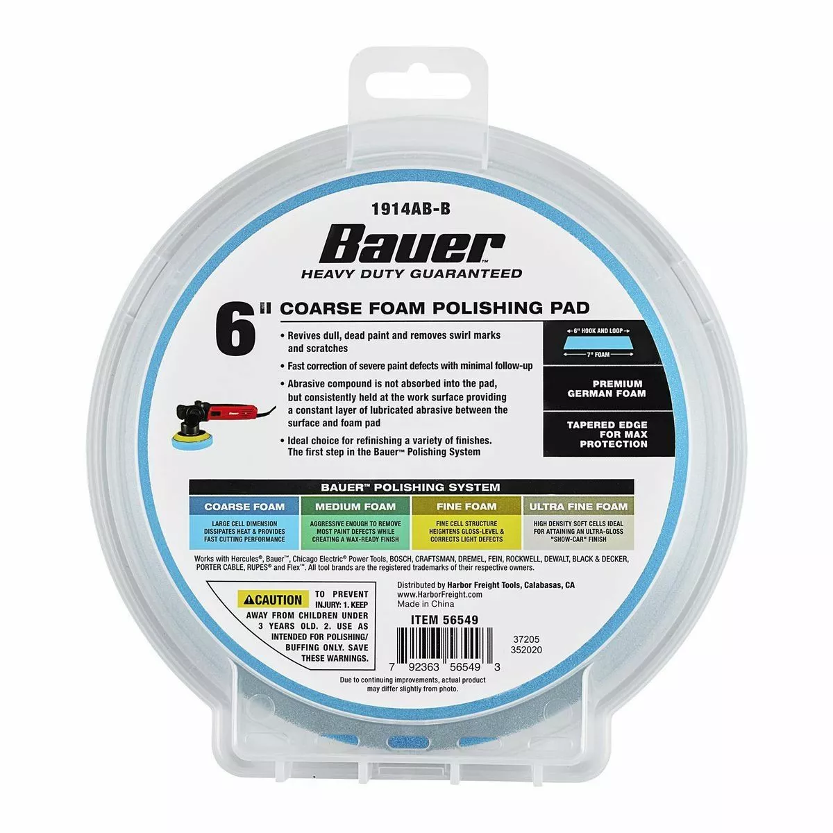 The first step in the BAUER™ Polishing System, this 6 in. Coarse Foam Polishing Pad revives dull, dead paint and removes swirl marks and scratches. The large cells provide fast cutting performance to remove paint defects while quickly dissipating heat.