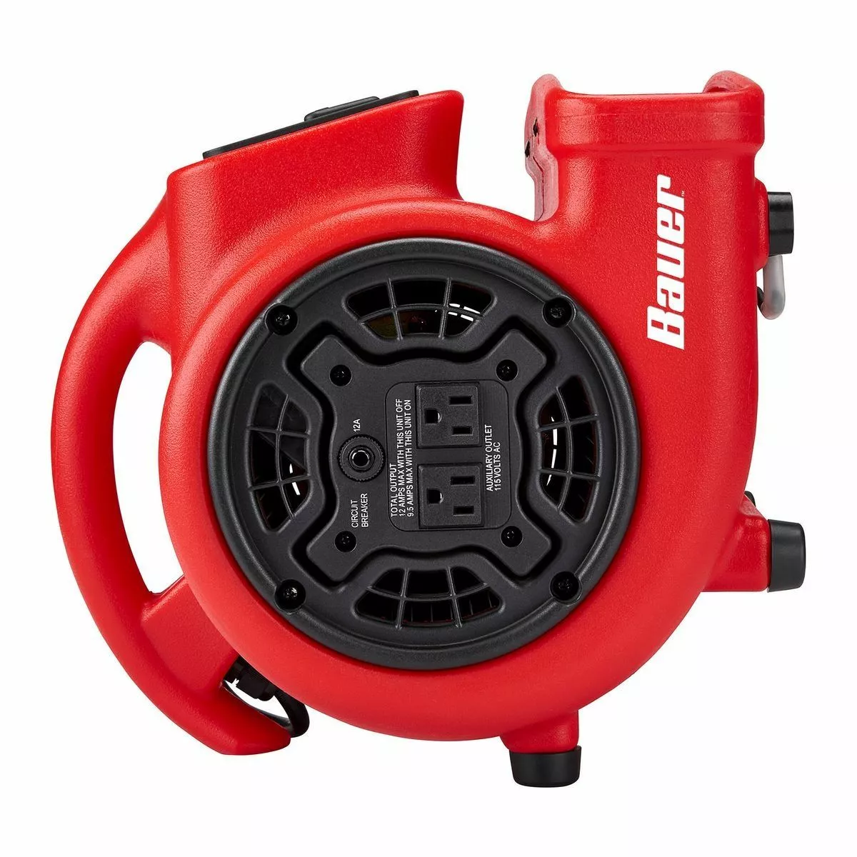 The BAUER™ 750 CFM 1/5 HP Floor Blower is designed to dry floors and carpet, ventilate closed spaces such as crawl spaces and attics, and circulate cooler air into overheated spaces. This 3-speed blower delivers up to 750 CFM and has an ergonomic handle, exhaust vent, and two protected 120v outlets for daisy-chaining multiple units. Three adjustable blowing angles (0°, 45°, 90°) provide versatility for ventilation, drying and cooling.