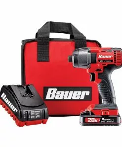 BAUER 20V Cordless 1/4 in. Hex Compact Impact Driver Kit with 1.5Ah Battery, Rapid Charger, and Bag